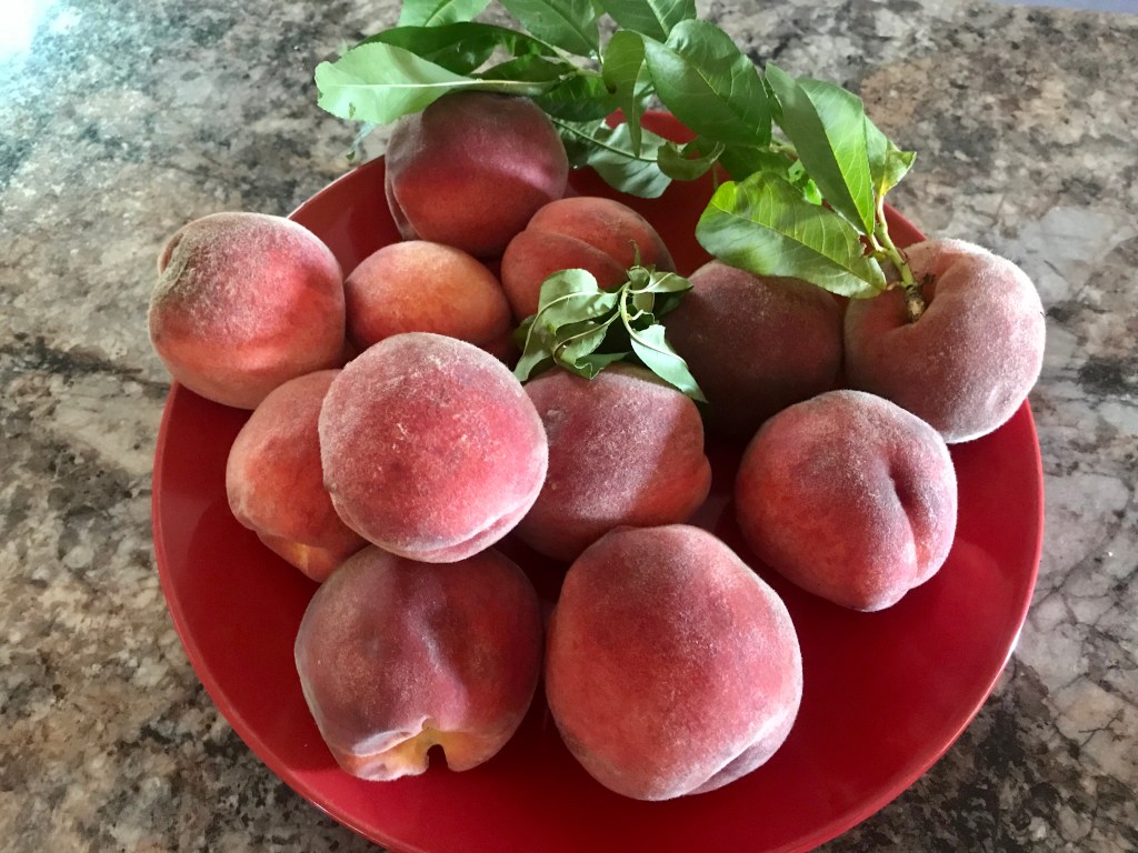 Once again, a neighbour dropped off some peaches at my door with a note saying to use them quickly! I didn’t have time to do anything with them right away. But this morning, I noticed that the peaches were so ripe that some of them were starting to spoil.