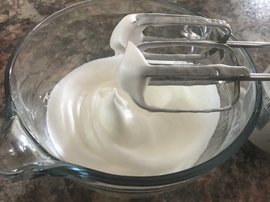 4 egg whites and 1 cup white sugar, 1/2 teasoon Vanilla extract