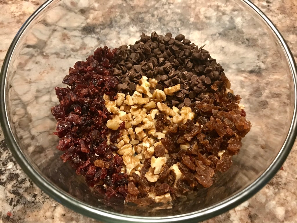 1/4 cup Chocolate Chips – I used mini ones to go along with the smaller pieces of everything that I added.