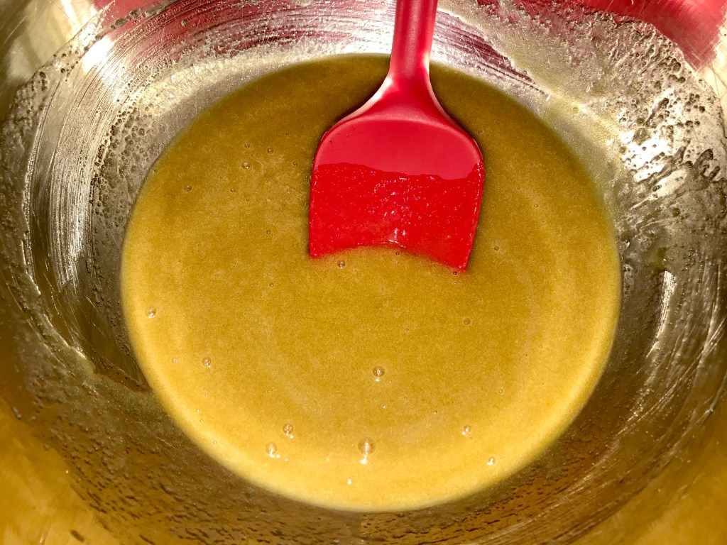 Melt your butter and set aside. It needs to be warm, not hot when you are ready to bake. So do it slowly on the stove or in the microwave making sure it does not boil.