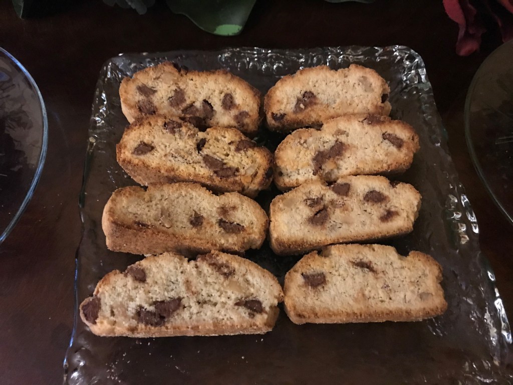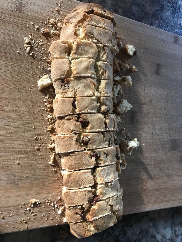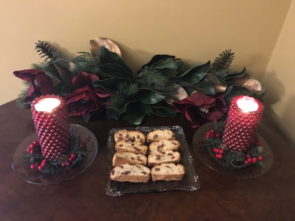 I haven’t posted any recipes for a few weeks. It feels like I’m caught in the “in-between” regular baking season and the Christmas season which is five weeks away! I started baking Biscotti a few years ago and was delighted at the simple recipes available online which bake up beautifully! I have placed them in apothecary jars and Mason jars, tied up festively with ribbons and bows to give to colleagues and clients. This presentation shows that I put time and effort in to give them a sweet treat which keeps for several weeks during the holidays. I usually set a container aside and pull out some Biscotti to accompany Christmas cookies or other baked goods. Good to keep on hand for any unexpected company.